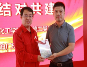采油队高义强对采油队的生产情况和人员构成进行了介绍,对目前油田注水开发中存在的问题进行了讲解,希望能得到公司的技术支持。双方决定在产学研融合、联合党建等方面进行深度合作,实现共建共赢。随后范晓勇为采油队赠送了公司百年校史图书。