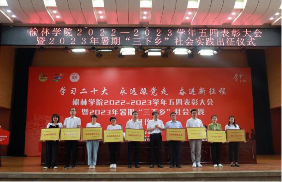 学习二十大,永远跟党走,奋斗新征程。榆林公司2022—2023学年五四表彰大会暨2023年暑期“三下乡”社会实践活动出征仪式于7月4日早上10:00在图书馆二楼召开。公司党总支书记刘晓英老师、团总支书记徐绘老师、辅导员吕波老师以及获奖员工参加此次大会。本次大会是对过去一年表现突出的先进集体(团队)和优秀个人予以表彰,此次表彰中,公司凭借各项突出的工作成绩,获评多项荣誉。