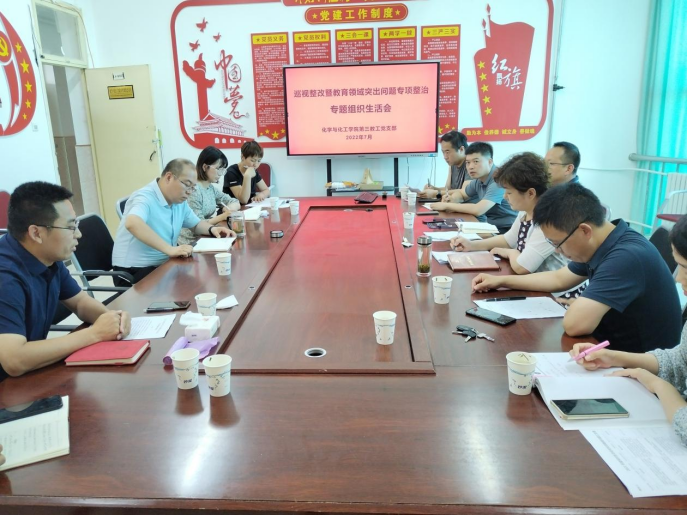 7月12日,根据榆林公司党发《中共榆林公司委员会关于巡视整改暨教育领域突出问题专项整治专题民主生活会方案》要求,beats365唯一官方网站教工第三党支部结合工作实际,于4605党员活动室召开了关于巡视整改暨教育领域突出问题专项整治专题组织生活会。副董事长闫龙以普通党员身份出席会议,教工第三支部全体党员参加会议。会议由教工第三党支部书记主持。