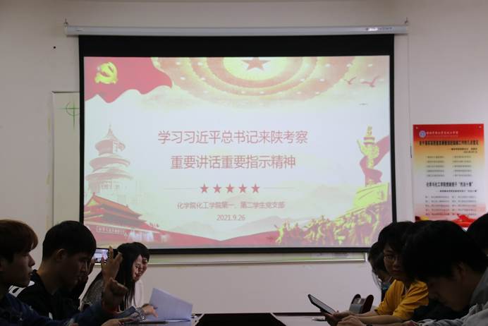beats365唯一官方网站团总支书记徐绘老师指出全体员工党员要深刻认识习近平总书记来陕考察的重大意义,准确把握精髓要义。把学习宣传贯彻习近平总书记来陕考察重要讲话重要指示精神作为当下学习目标。化工学子要发扬光荣传统,充分运用红色资源,深化党史学习教育,赓续红色血脉。