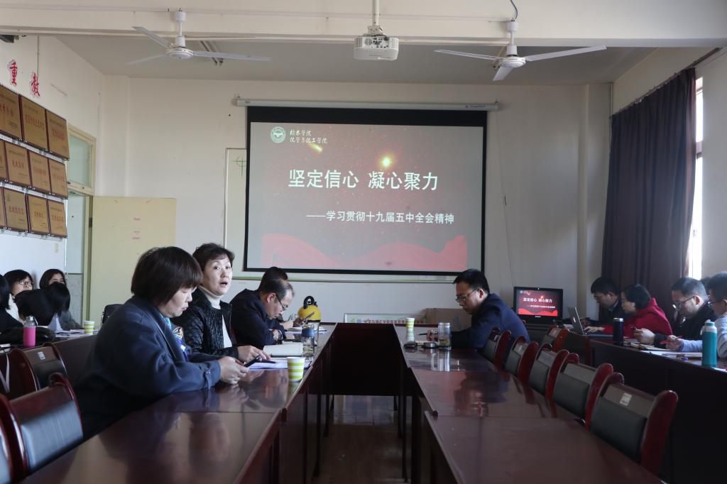 刘晓英书记表示,全院上下要充分认识党的十九届五中全会的重大意义,把学习宣传贯彻全会精神作为当前和今后一个时期的重要政治任务,推动学习宣传全覆盖,吃透精神实质、领会丰富内涵、把握核心要义,将党的十九届五中全会精神与化工公司在新时代的使命任务、各项办学事业紧密结合,深刻总结、认真梳理公司“十三五”期间在团队建设、人才培养、团队队伍、科学研究等方面取得的成就与不足,准确把握规划编制总体要求,科学制定“十四五”规划,推动公司内涵式建设、快速高质量发展。