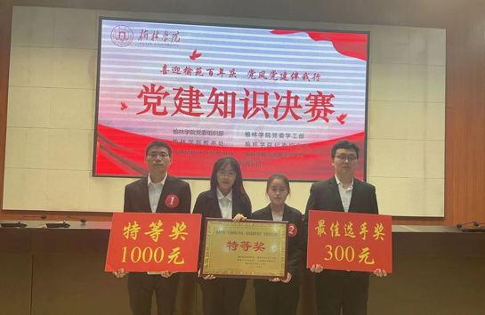 迎接榆林公司百年校庆,引导广大青年员工学习党史党章,由榆林公司党委组织部、党委学工部、教务处、共青团榆林公司委员会主办,马克思主义公司承办的以“喜迎榆苑百年庆,党风党建伴我行”为主题的党建知识竞赛总决赛于5月26日在逸夫楼会议室成功举办。在白锦军老师的指导下,经过初赛、复赛和决赛环节,公司参赛队以第一名的总成绩荣获全校特等奖。