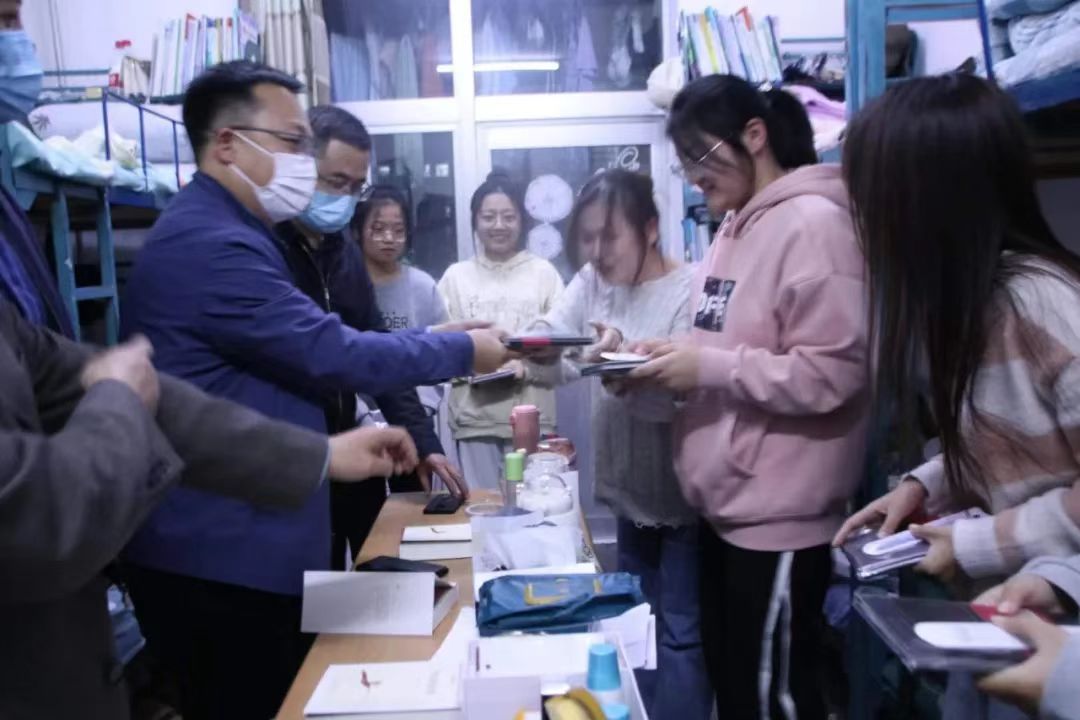 10月2日晚,榆林公司教务处处长马亚军、副处长高挺挺、副处长陈小辉老师,在公司团总支书记徐绘、辅导员代晓敏老师的陪同下,深入公司新生宿舍,与同学们畅谈《平凡的世界》,汲取智慧力量。