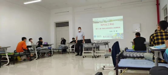 为积极配合落实相关管控措施,10月3日,公司21化工1班、2班的员工临时转移至温馨公寓进行健康监测,当天为他们授课的老师李健也一同转移至温馨公寓。留观三天期间,为使同学们缓解紧张情绪,安心有序学习生活,李健老师把教学课堂带入温馨公寓,打造了一堂别样的《现代化工导论》专业课。