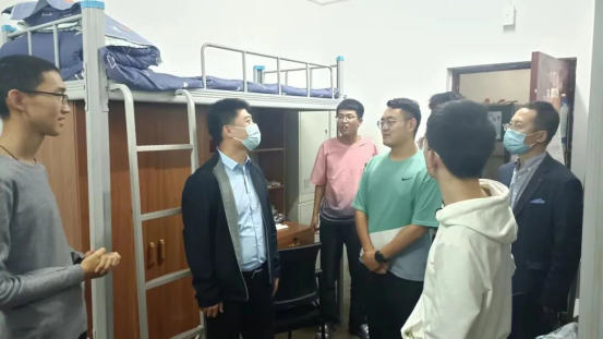 在走访中,校、院领导老师分组走进公司每一个宿舍进行了国庆节放假政策宣讲,并希望同学们非必要不离市,做好个人防护,理解公司出于安全考虑做出的国庆假期安排;嘱咐同学们自觉遵守公司疫情防控相关要求,自觉按时进行核酸检测,坚持每日两次“我在校园”健康打卡,提高防控意识,保持规律、健康的生活作息。同时希望同学们结合个人兴趣爱好,积极参加公司在国庆节期间为同学们精细策划的系列趣味活动及文体活动。