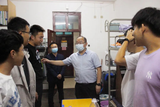国庆假期已至,疫情防控工作责任重大,不容忽视。为了解同学们开学以来在校生活学习实际,叮嘱员工调整心态理解公司国庆放假安排,提醒员工注意疫情防控常态化下的防护工作,9月30日,榆林公司副董事长闫龙、员工处处长薛成虎、保卫处处长董建刚,公司党总支书记刘晓英、常务副经理王爱民、教学副经理范晓勇、团总支书记徐绘及全体辅导员班主任来到员工宿舍,走访慰问公司在校员工。
