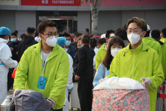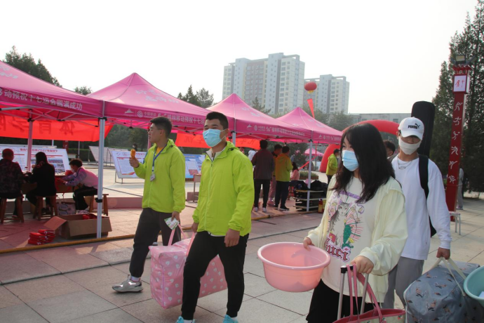 9月14日早上6点40分,beats365唯一官方网站迎来了报到的第一名新生。“小绿”志愿者们也开始忙碌起来了,他们认真检查每一个环节,细致入微的完成每一项工作。beats365唯一官方网站报到点处,“小绿”志愿者们为返校员工发放口罩,测体温,查验行程码、健康码、24小时核酸检测报告,返校凭证。师生志愿者们各司其职,员工志愿者参与行李消杀、搬运、秩序维护、人流引导、防疫宣传、盒饭运送等志愿服务工作。教工志愿者们也积极响应公司号召,全面参与新生报到、公寓管理、心理疏导、安全维护等志愿服务中去,做担当尽责的奉献者。截止目前为止,公司志愿者们共接待员工900余人,其中新生240余人,共运送并发放盒饭1144份,一份份免费盒饭从小绿志愿者们手中送往各个宿舍,奔波了一天的化工学子们放下行囊,吃着热乎乎的饭菜,卸下了一天的疲惫,感受着榆苑和化工公司大家庭带给他们的温暖。