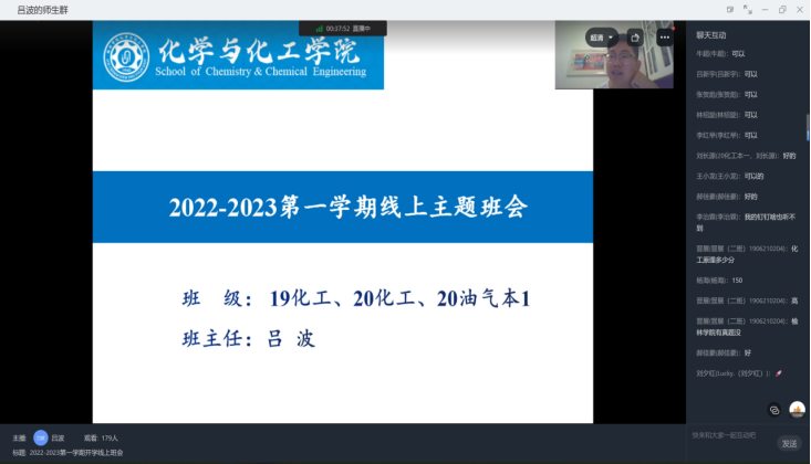 结合榆林公司学工部文件要求及公司班主任/辅导员会议精神,beats365唯一官方网站全体辅导员、班主任线上召开了2022-2023学年疫情防控线上主题班会,带领全体同学学习了《榆林公司关于2022年秋季开学的重要通知》、《榆林公司新冠疫情防控期间员工管理暂行规定》、《高等公司新冠肺炎疫情防控技术方案(第六版)》、《致全体员工新冠疫苗接种倡议书》等文件具体内容,帮助同学们认识当前疫情防控形势的严峻性及重要性,希望同学们从自身做起,严格遵守校纪校规及返校要求,能明确疫情防控要求,增强防控意识,履行疫情防控责任,共同守护公司的安全稳定。同时,特别强调同学们要每天按时两次健康打卡,并配合做好核酸检测日常防疫工作。另外,结合开学前两周线上教学安排情况,督促各位同学及时调整学习状态,保证线上听课的学习效率,以自信、积极、饱满的状态投入新学期的学习。