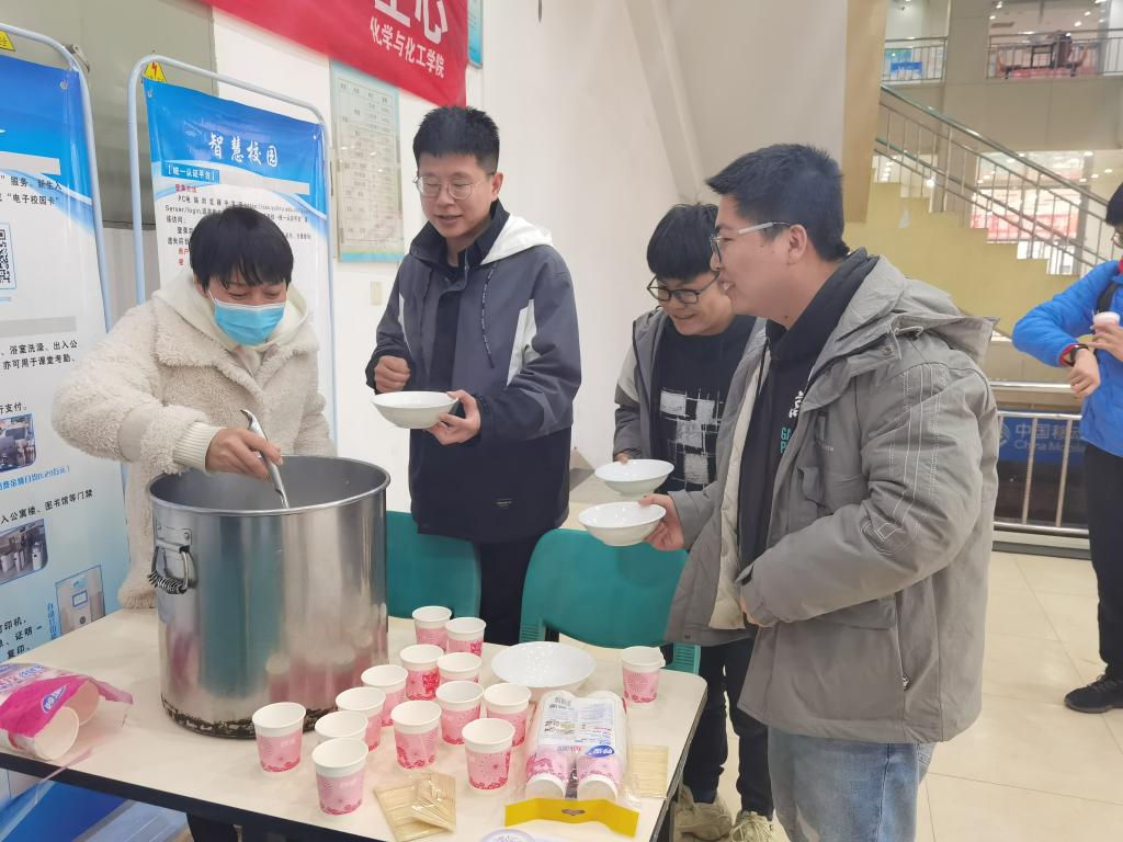 在元宵节来临之际,为欢迎刚刚返校的广大同学,共同度过一个美好的节日,2月25日,公司系各领导老师走访员工宿舍,仔细查看宿舍情况,与大家进行亲切的交流,认真询问了大家假期生活情况、新学期的计划等,并强调各宿舍要保持清洁卫生,团结互助,树立优良舍风学风。2月26日下午5点-6点,化工院联合公司食堂在禾顺园门口开展了免费送汤圆活动。看到老师们准备的特殊礼物、听到暖心慰问的话语,同学们都感到非常地欣喜和感动,并对领导老师的关心表示感谢,表达了对公司的美好祝愿。