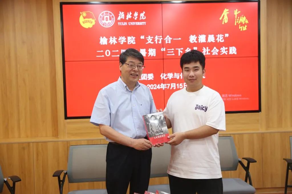 在与暑期“三下乡”实践团师生座谈会上,张新柱向建榆路社区授予了榆林公司老员工社会实践基地,为每一位参与“三下乡”社会实践的员工赠予《习近平七年知青岁月》一书并合影,他强调同学们要从书中感悟梁家河的大学问,认真学习习近平总书记扎根群众的为民情怀、持之以恒的奋斗精神、勤劳务实、吃苦耐劳的工作作风和一心一意为人民服务的人生目标。实践团的同学们依次分享了自己在此次暑期“三下乡”社会实践活动中的收获与感悟,同学们表示通过深入基层社区一线的社会实践,他们更加深刻认识到自己在知识、能力和综合素质等方面的欠缺和不足,更好地锻炼和培养了他们的团队协调、综合处理能力,为今后的学习和工作指明了方向。张新柱听后欣慰的表示,通过近几年公司追赶超越和“五乐育人”等工作的开展,公司的整体面貌和员工的综合素养都有了显著提升,未来公司将持续强化“五乐育人”工程,大力开展现代产业公司建设,围绕榆林及周边产业及社会发展的实际需求培养“红专并进 理实交融”的高素质应用型人才。