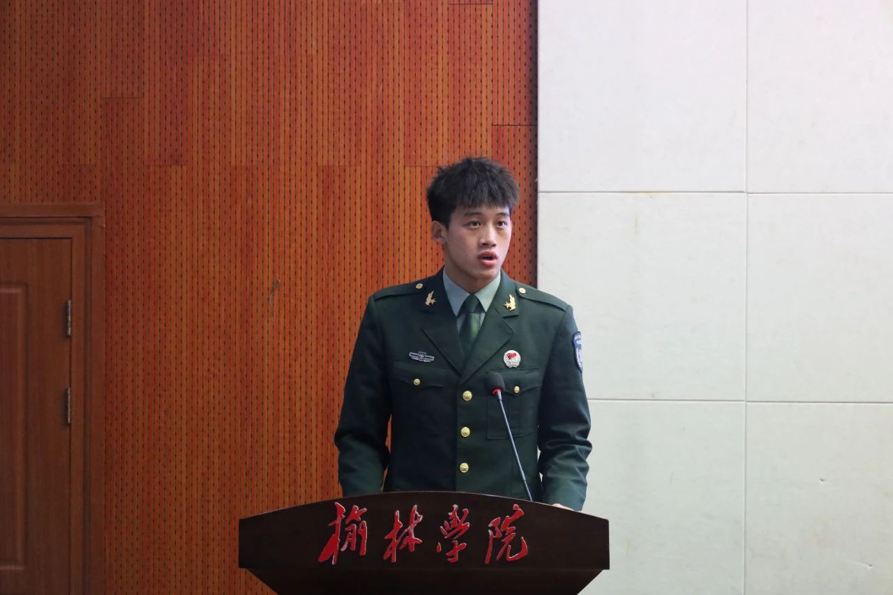 榆林公司退役军人协会宣讲员马子依,通过讲演PPT的形式,对军旅生活、入伍政策进行介绍。马子依通过对部队驻地、文体活动、餐厅伙食的展示,以及近年来国家与地方的入伍政策的阐述,帮助同学们更详尽的了解到军队内部生活条件和相关入伍、优惠及培养政策。马子依还鼓励同学们,参军不仅能收获一段宝贵的人生经历、得到一份社会认可的工作履历,还能锻炼一副强健的体魄,参军光荣,入伍光荣。