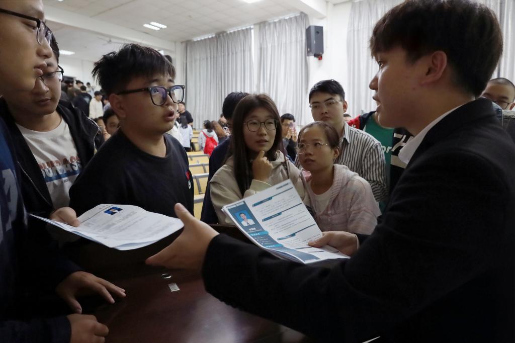 国家能源集团(哈密)校园招聘主管兰良进行了校园招聘宣讲,介绍了国家能源集团哈密项目的概况、企业文化、岗位需求及相关薪酬待遇情况。在场同学和企业招聘宣讲人员进行了深入的互动,部分同学现场投递了求职简历。