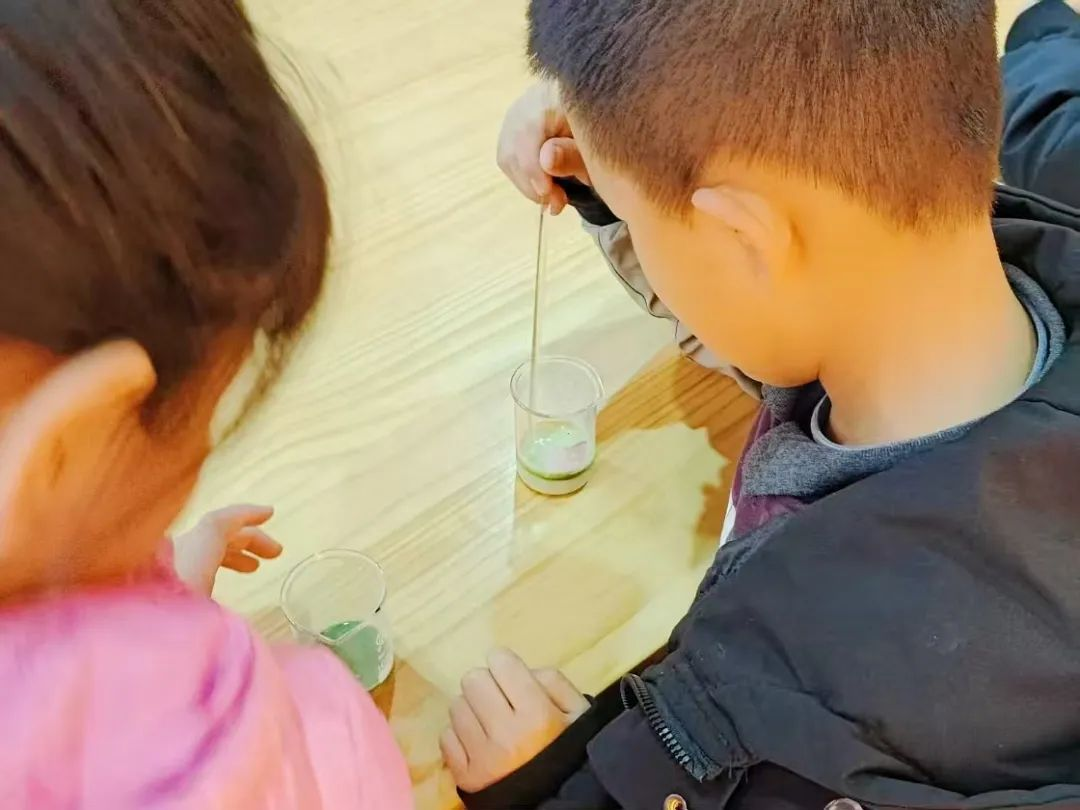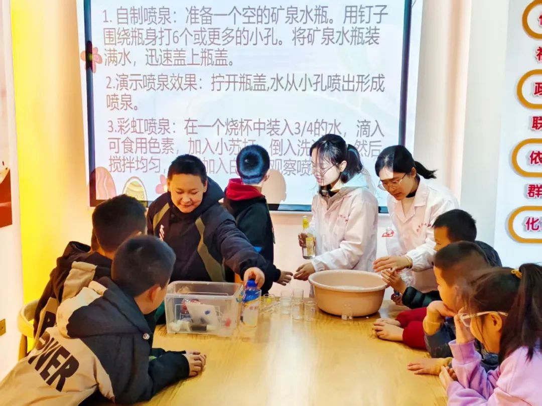 心连心社团的老员工志愿者变身科学魔法师,将化学的奥秘编织成童趣盎然的探索之旅。他们巧妙策划了“彩虹牛奶”、“自制喷泉”等兼具安全性与趣味性的创意实验,引导孩子们亲手搅拌彩虹、观察物质嬗变。当小苏打与白醋碰撞出欢腾的气泡,抽象的科学原理化作指尖跃动的魔法,为童真的眼眸点亮了通往微观宇宙的星光隧道。