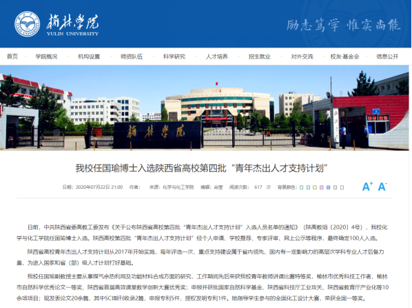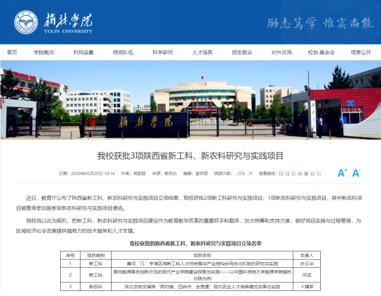 化学工程与工艺专业获批陕西省“双万计划”一流专业,《有机化学》课程获批陕西省线上线下混合课程,出版了《应用有机化学基础》、《应用有机化学基础实验》和《物理化学》教材3部,其中《应用有机化学基础》、《应用有机化学基础实验》已成功应用于全校20级所有本科生。“化学”硕士一级学科、“资源与环境”硕士专业学位点作为榆林公司新增7个硕士点中的2个,通过了陕西省学位委员会审核,加上原有“材料与化工”硕士专业学位点,公司硕士点数量将达到3个,成为全校硕士点最多的公司,学科专业方向将达到6个,完全覆盖beats365唯一官方网站现有所有本科专业。特别是“化学”硕士一级学科,是公司一级学科“零”的突破。