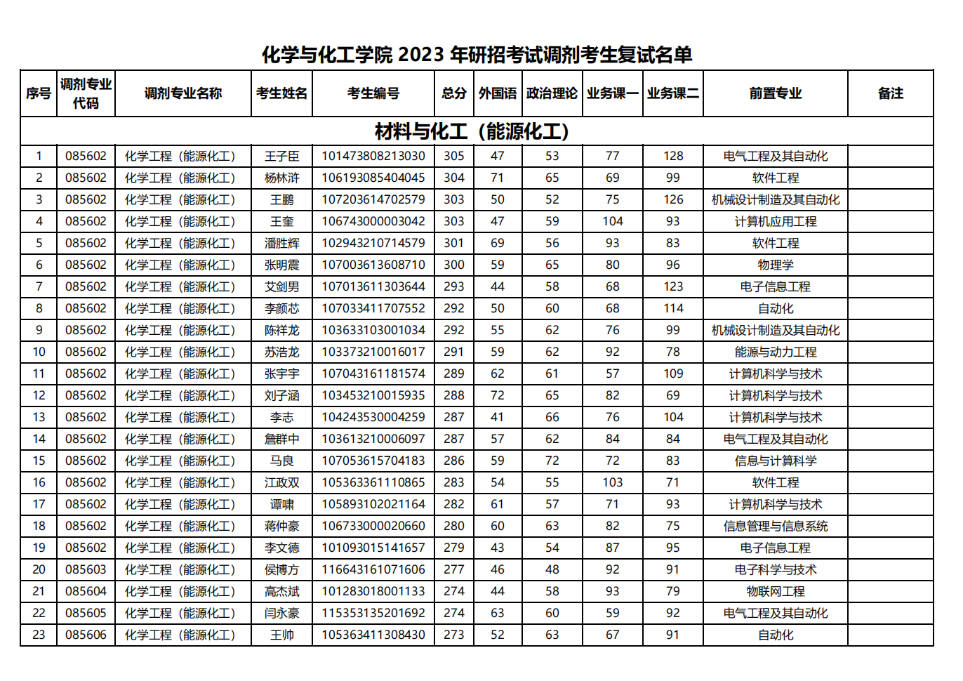 一、调剂志愿第一批次复试考生名单