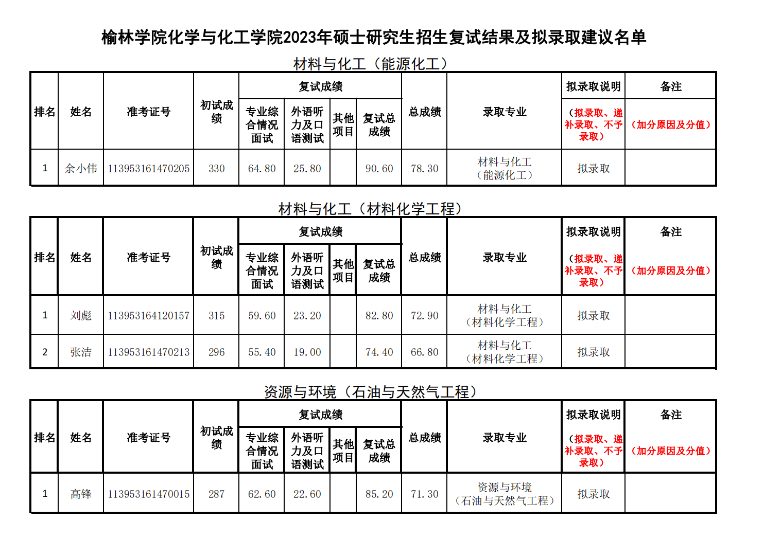 根据《榆林公司beats365唯一官方网站2023年硕士研究生招生复试录取工作方案》,公司于4月1日以线下的形式对一志愿考生进行了复试。现将参加第一志愿复试考生的基本信息、初试成绩、复试各项成绩、总成绩及公司“建议录取”结果予以公示: