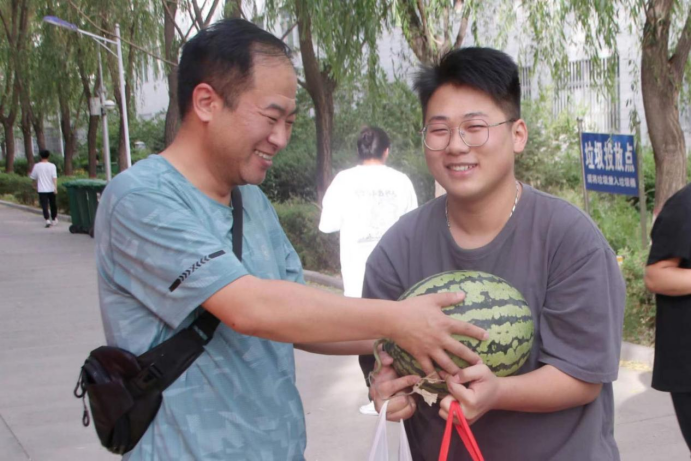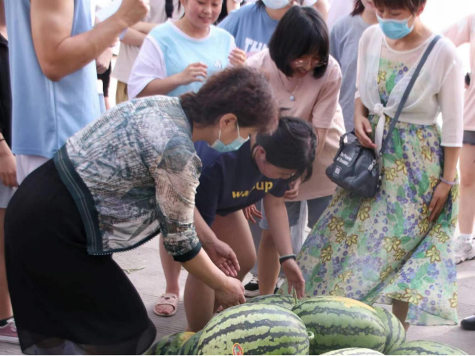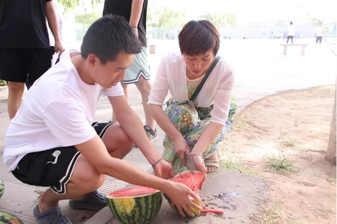 老师们来到员工宿舍,为每个宿舍带来脆甜爽口的西瓜,送来酷暑夏日的一份清凉,点滴关怀入人心田。西瓜和夏天这对绝妙组合上线,清凉一“夏”,在为同学们送清凉的同时,也为宿管送去了甘甜西瓜,瓜肉爽脆,甜蜜多汁,吃在嘴里让人瞬间忘却夏日的炎热。大家脸上都洋溢着开心的的笑容,纷纷对老师们表示感谢,欢声笑语驱散了大家心中的燥热,带给大家一丝凉爽。品尝着夏日里的甘甜,心情也如这西瓜一样甜甜的。