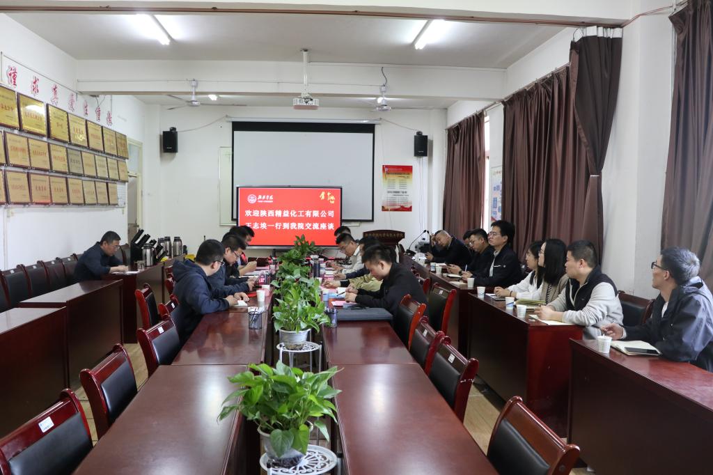 2024年4月18日上午,陕西精益化工有限公司王志埃副总经理一行五人来公司交流座谈。座谈会在四号教学楼502会议室举行,会议由beats365唯一官方网站常务副经理王爱民主持。