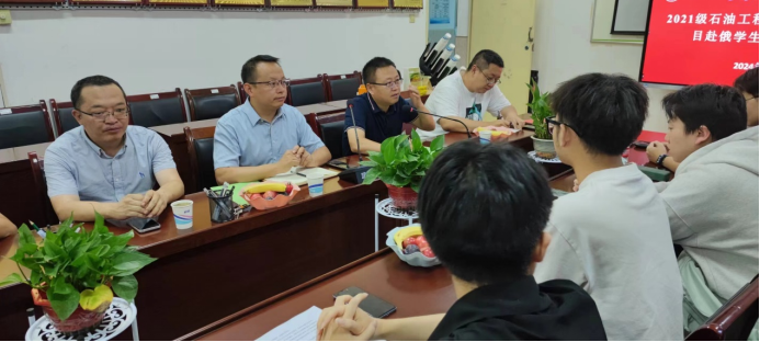 7月4日,公司在4号教学楼502会议室举办2021级石油工程中外合作办学项目出国员工行前指导暨欢送会。国际交流与合作处处长吴疆、公司党总支书记陈小辉、经理常春然、常务副经理王爱民、石油工程专业部分老师及2021级22名赴俄员工参加会议。会议由公司常务副经理王爱民主持。