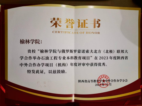榆林公司与俄罗斯罗蒙诺索夫北方(北极)联邦大学合作举办石油工程项目于2021年4月获教育部批准(批准书编号:MOE61RU2A20212163N)。该项目在2023年陕西省教育厅高等教育学会中外合作办学年会上获评为优秀项目(机构),在俄罗斯石油天然气行业大学联盟中,北方(北极)联邦大学与榆林公司的的石油工程专业本科双文凭合作办学项目获得排名第一。本项目目标是培养一批具有良好人文社会科学素养和国际视野和创新精神,能利用工科基础知识和石油工程专业知识,解决石油与天然气工程领域的工程设计和油气生产运行与管理等工作的高素质复合型人才。项目学制为全日制四年,采用“3+1”培养模式,使用中、俄双语教学。员工前三年在榆林公司学习,专业与语言成绩达到要求者第四年可赴俄罗斯学习,完成规定的课程且考核合格后,可获得由榆林公司和俄罗斯罗蒙诺索夫北方(北极)联邦大学授予的双学位。