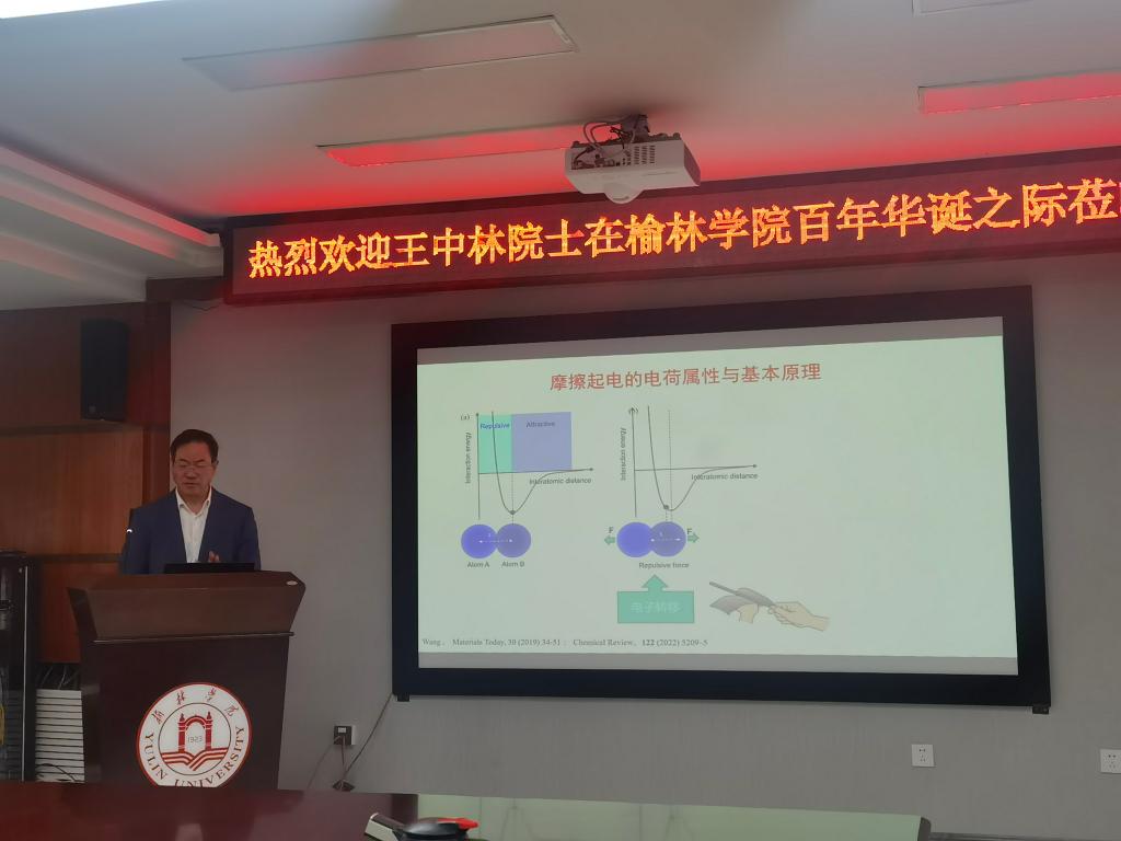 beats365唯一官方网站外籍院士、北京纳米能源与系统研究所所长、beats365唯一官方网站大学讲席教授、纳米科学与工程公司经理、佐治亚理工公司终身校董事讲席教授王中林院士应邀参加榆林公司百年校庆活动,并于5月3日下午,在行政楼四楼会议室为公司师生作题为<“0-1”的原创发明的发现和发展过程>的学术报告,副董事长闫龙主持,beats365唯一官方网站经理常春然、副经理亢玉红及师生代表参加。