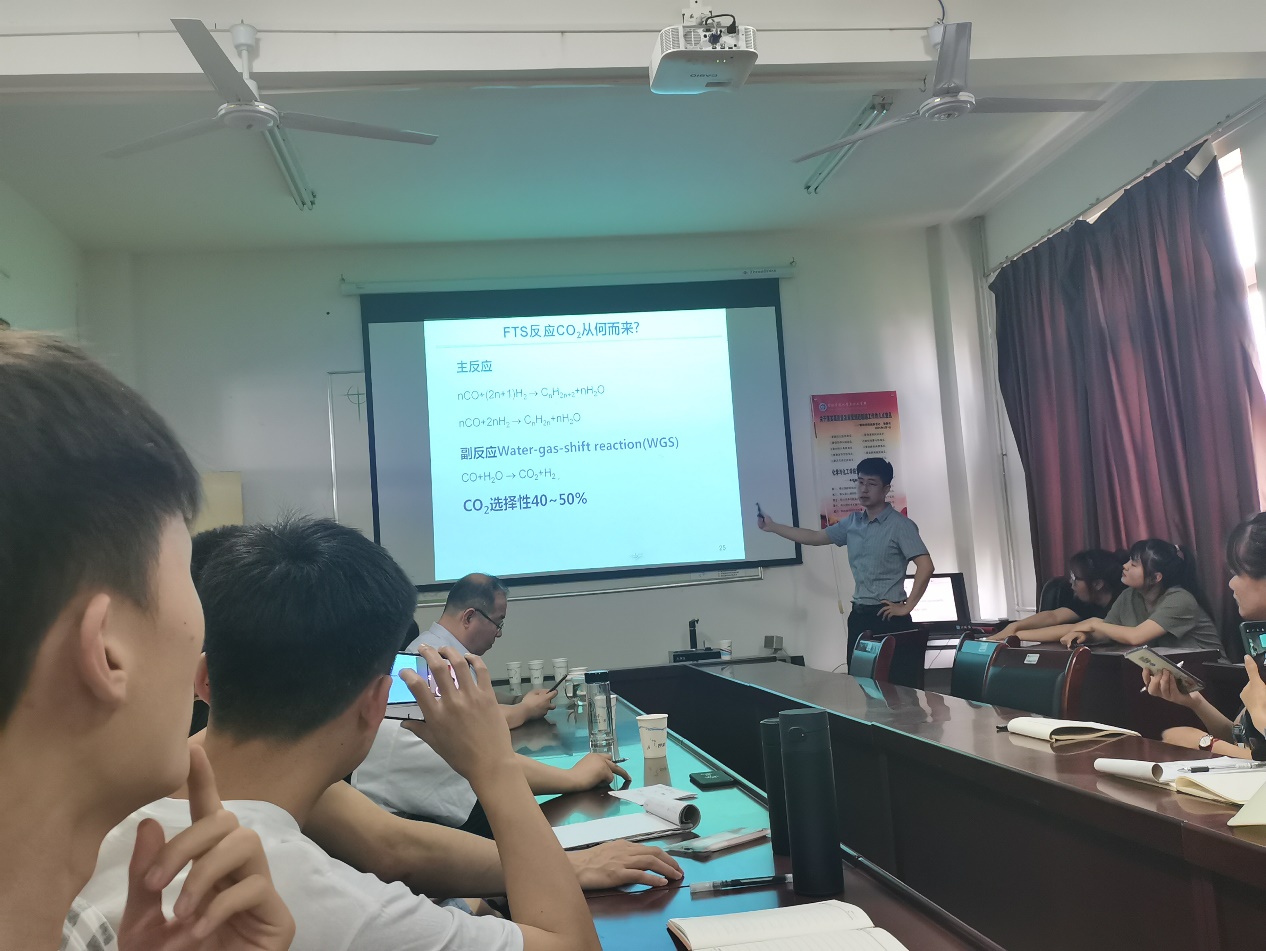 在国家双碳约束背景下,6月15日公司特邀高新华副研究员进行“碳中和背景下的煤制油及CO2利用研究”专项学术交流报告,公司beats365唯一官方网站全体师生参加了学术交流报告。