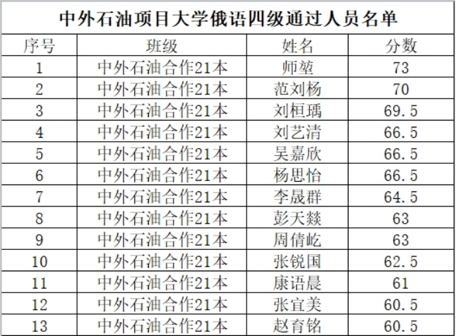 近日,2023年全国大学俄语四级考试成绩揭晓,公司首届中外石油合作项目员工成绩喜人,俄语四级通过率为46%。