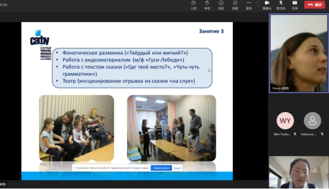 为了更好的开展中外合作办学项目,提高项目俄语教学水平。2月13-2月14日,国际教育公司的俄语老师赵婷线上参加由俄罗斯北方(北极)联邦大学组织的语言教学国际研讨会并做了专题交流。