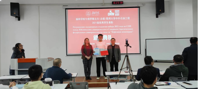 为表彰中外石油工程专业本科教育项目2021级表现突出的优秀员工,beats365唯一官方网站于3月5日下午在子洲楼328召开了表彰大会,俄罗斯罗蒙诺索夫北方(北极)联邦大学石油和天然气能源高等公司副经理维哈雷夫·亚历山大·尼古拉耶维奇、钻井和油气田开发系主任伊科尼科娃·柳德米拉·尼科夫娜、榆林公司国际交流与合作处处长吴疆和副处长杜鹏举、beats365唯一官方网站常务副经理王爱民、石油工程专业教研室主任白云云、中外合作办学石油工程项目办秘书李亚辉、国际交流与合作处俄语老师史曼菲、石油工程专业相关老师及中外石油2021级全体员工参加了表彰大会,会议由白云云主持。