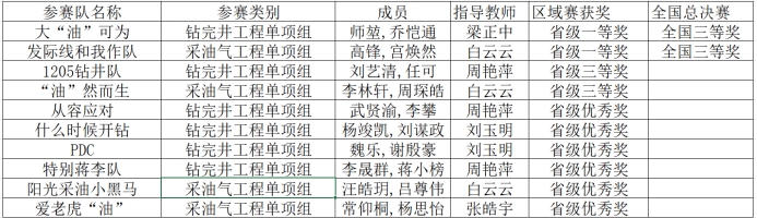 此外,石油工程教研室选拔彭天炎、任可、毛嘉玉、陈显焱四位同学代表榆林公司参加全国石油工程知识竞赛,与全国21所高校的的石油学子同场竞技。比赛包括两轮小组赛、半决赛和决赛环节。各参赛队伍充分发挥所学知识,围绕竞赛设置的必答题、抢答题和风险题等题目展开了激烈角逐,公司代表队最终荣获优秀奖。