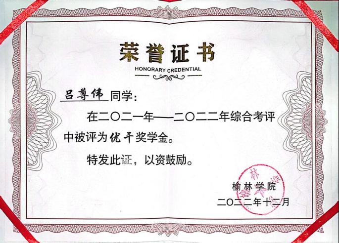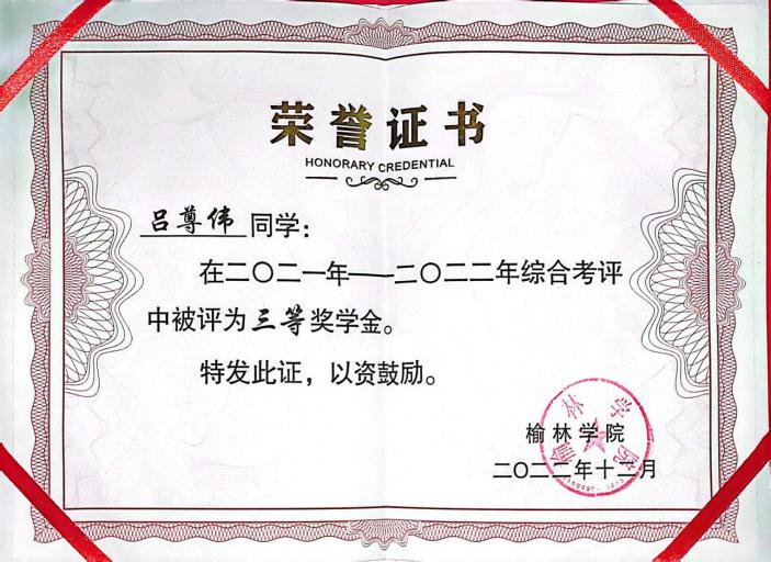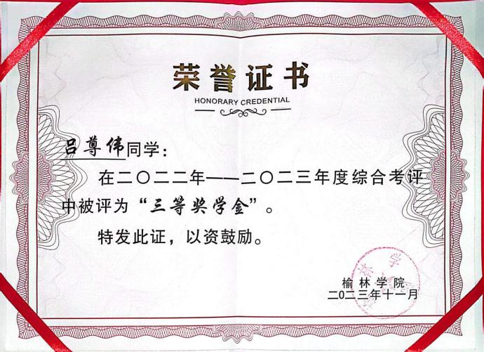 曾评选为榆林公司优秀班干部、榆林公司优秀共青团员、马克思主义公司先进个人、榆林公司中外合作办学项目“项目之星”五星荣誉奖励,曾获陕西省第七届百家心理慕课省级特等奖、榆林公司beats365唯一官方网站防艾知识竞赛二等奖、榆林公司数学与统计公司第三届“心沐阳光·必有远芳”校园心理情景剧比赛优秀奖、榆林公司2021-2022学年三等奖学金、榆林公司2022-2023学年三等奖学金。