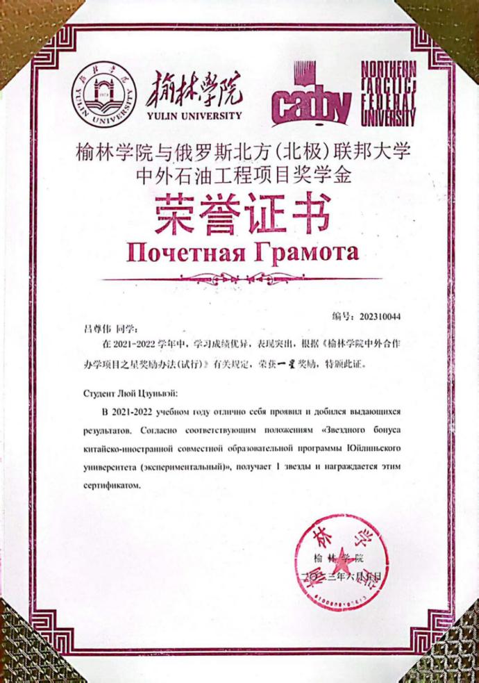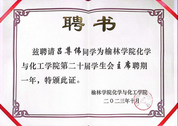 吕尊伟,2021级石油合作一班班长,中共预备党员,本科在读,大一至大三期间,历任榆林公司校团委员工会学习部宣讲团负责人、beats365唯一官方网站团总支员工会文艺部负责人、榆林公司小艺团社长,现担任beats365唯一官方网站团总支员工会负责人(主席团成员)、榆林公司第五届员工会委员会常务委员职务。