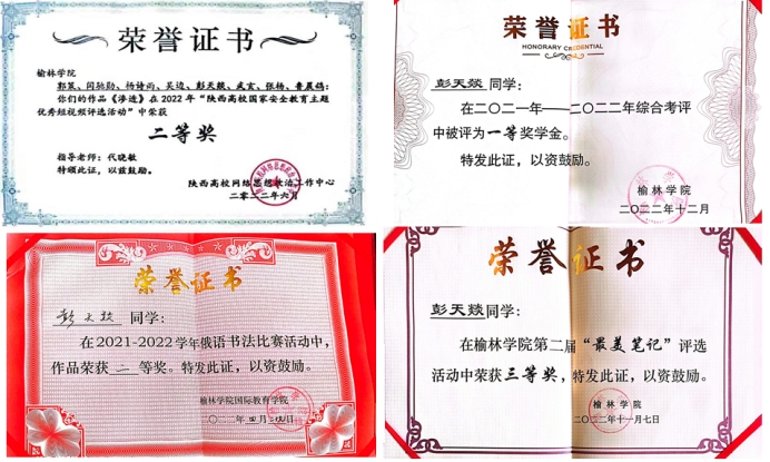 彭天燚,男,汉族,2002年7月29日,2021级石油工程(中外合作)一班,学习委员,中共预备党员。在校期间曾获得2021-2022学年一等奖学金,2022-2023学年国家奖学金,累计获得专业“项目之星奖学金”五星,“陕西省第十三次老员工高等数学(本科)竞赛”二等奖,2022年“陕西高校国家安全教育主题优秀短视频活动”二等奖,榆林公司第二届“最美笔记”评选活动二等奖,2021,2022连续两年获“迎新杯”篮球赛第一名,2021年“俄语书法比赛”二等奖并且顺利通过俄语四级考试,座右铭:有志者,事竞成;苦心人,天不负